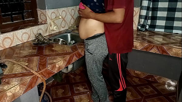 Novia gordita y gaseosa lavando platos y tirándose fuertes y naturales en pantalones cortos ajustados 10 seg