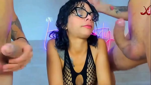 chica con gafas con mayas se traga dos pollas enormes 11 min